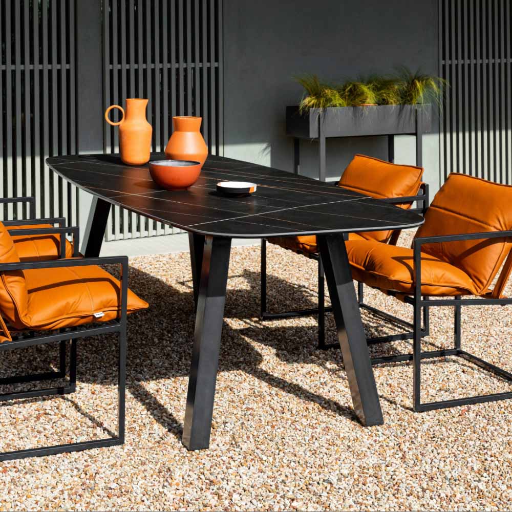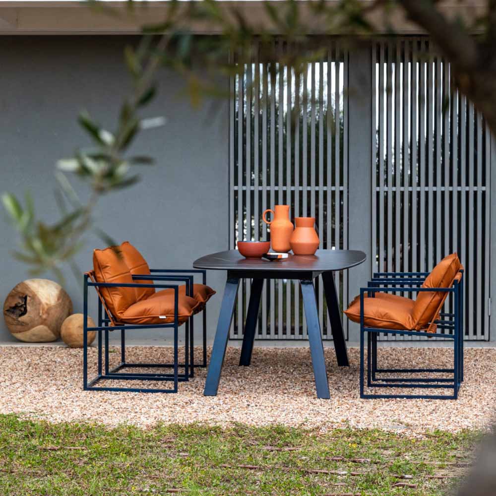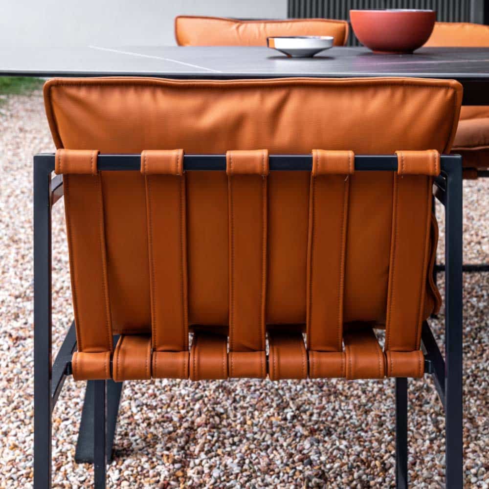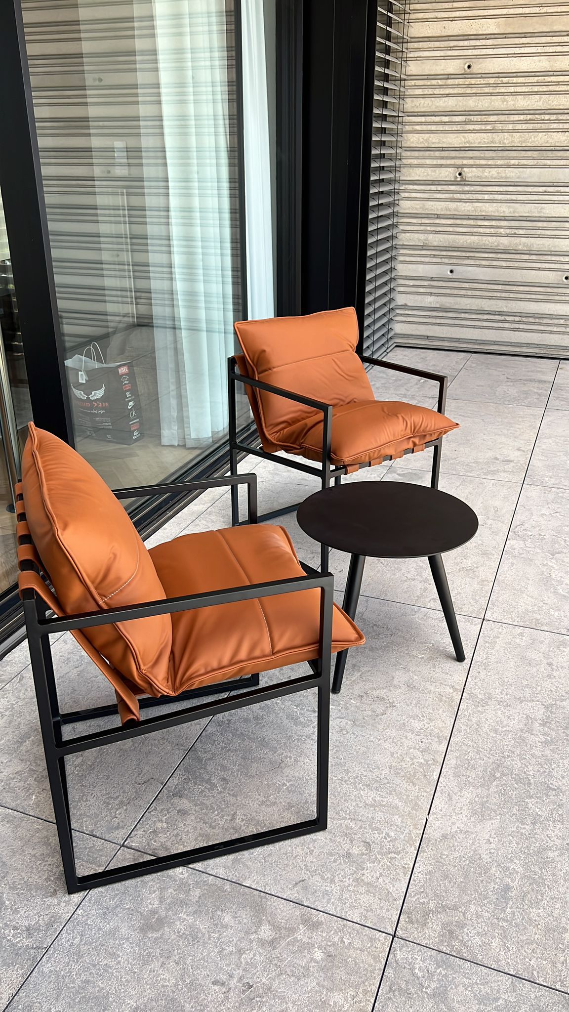 כיסא-כורסא בעל שלדת אלומיניום,בעיצוב מהפכני , כריות מרופדות בעור סינטטי מיוחד לחוץ מהמותג הצרפתי SUNBRELLA.