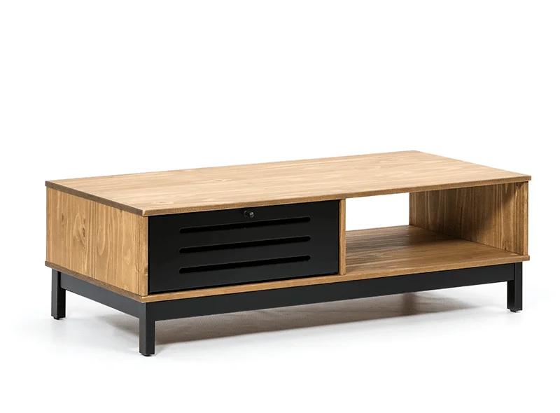 שולחן כפרי לסלון מעץ מבית המותג הספרדי MARCKERIC בצבעי עץ ושחור. שולחן פרקטי בעיצוב אלגנטי עם מגירת אחסון בעלת ידית ממתכת ותא פתוח לאחסון נוסף. רגלי עץ גושני בצבע שחור. * השולחן סוג ב' אחרון מתצוגה. * לקבלת פרטים נוספים/הזמנה בטלפון- 03-5254999